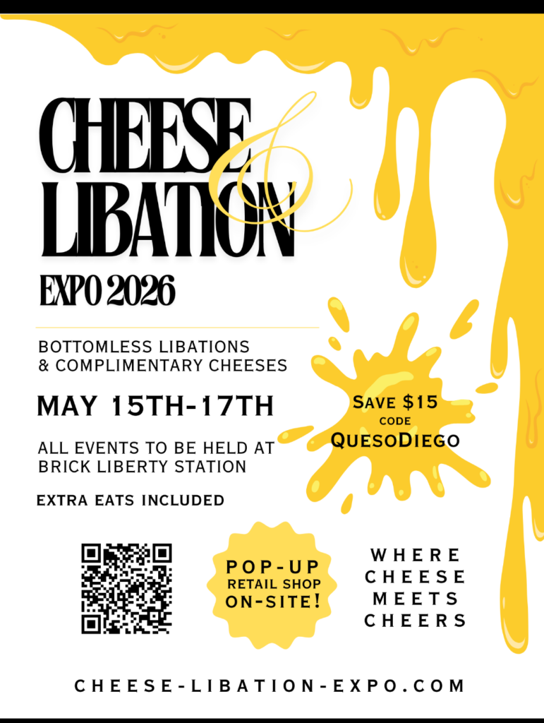 Queso Diego is a proud partner of the 2026 Cheese and Libation Expo. By purchasing tickets through Queso Diego, you can receive a discount and support the club at the same time.